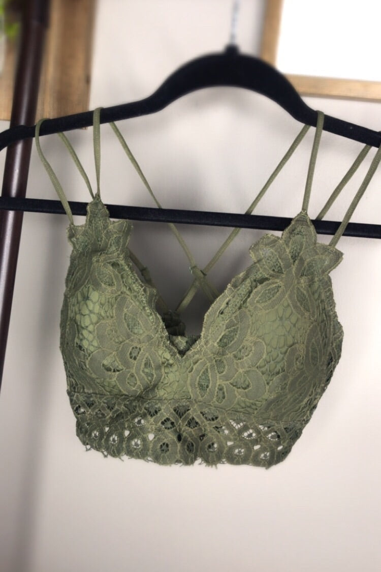 Feel Pretty - {Burgundy & Olive} Lace Bralette - SIZE SMALL
