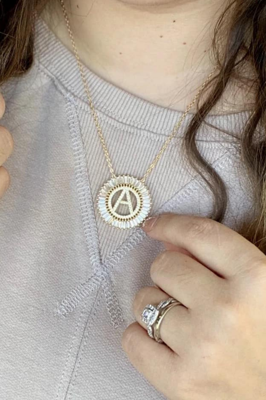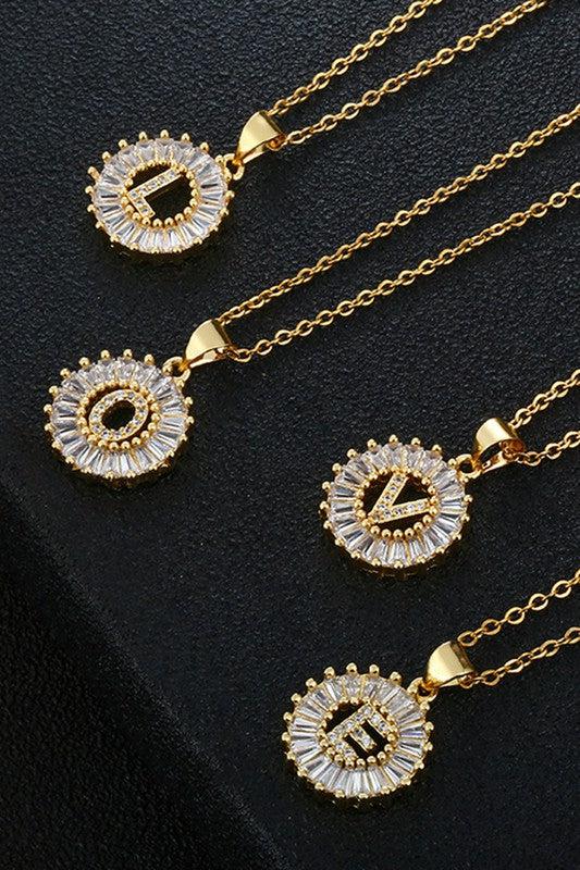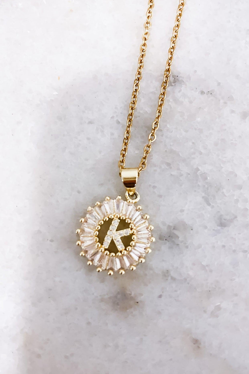 Gold Initial Sun Pendant Necklace {F, V, W} - RESTOCKED