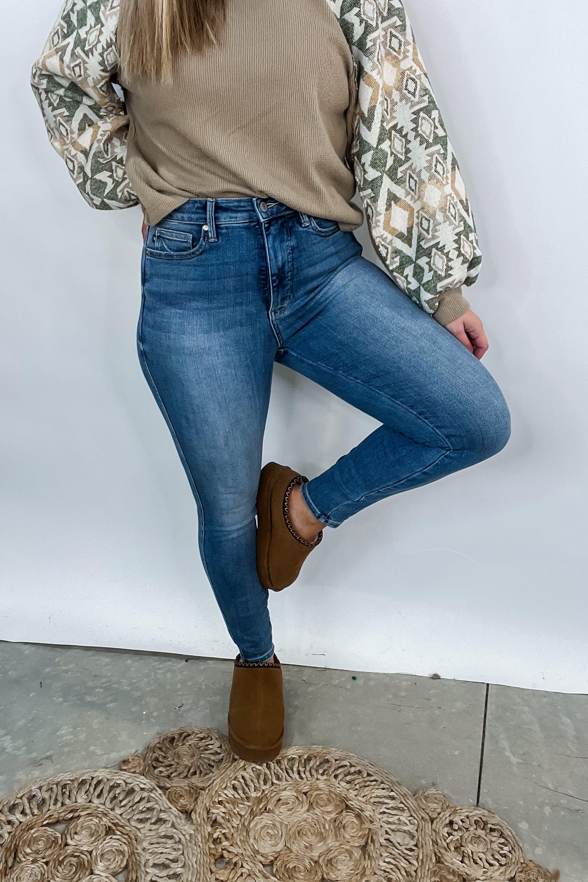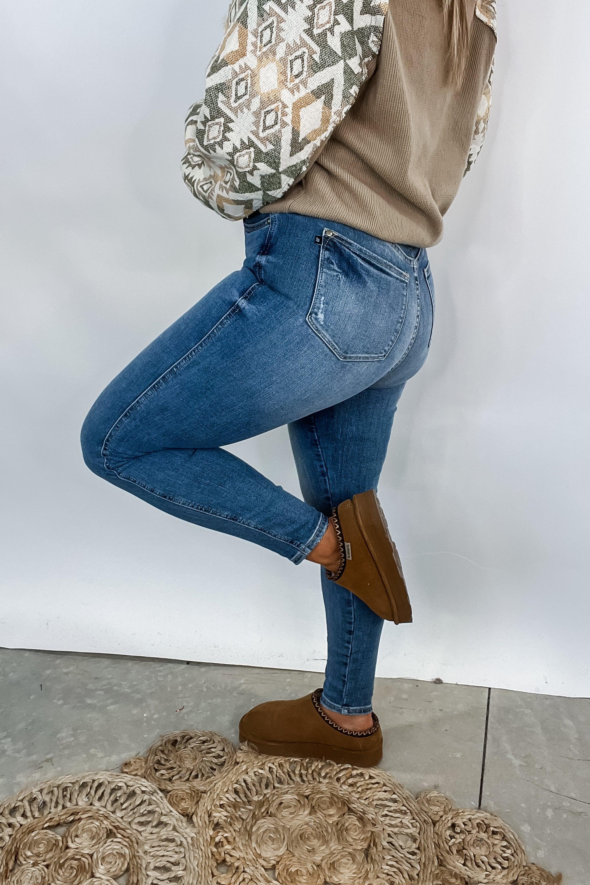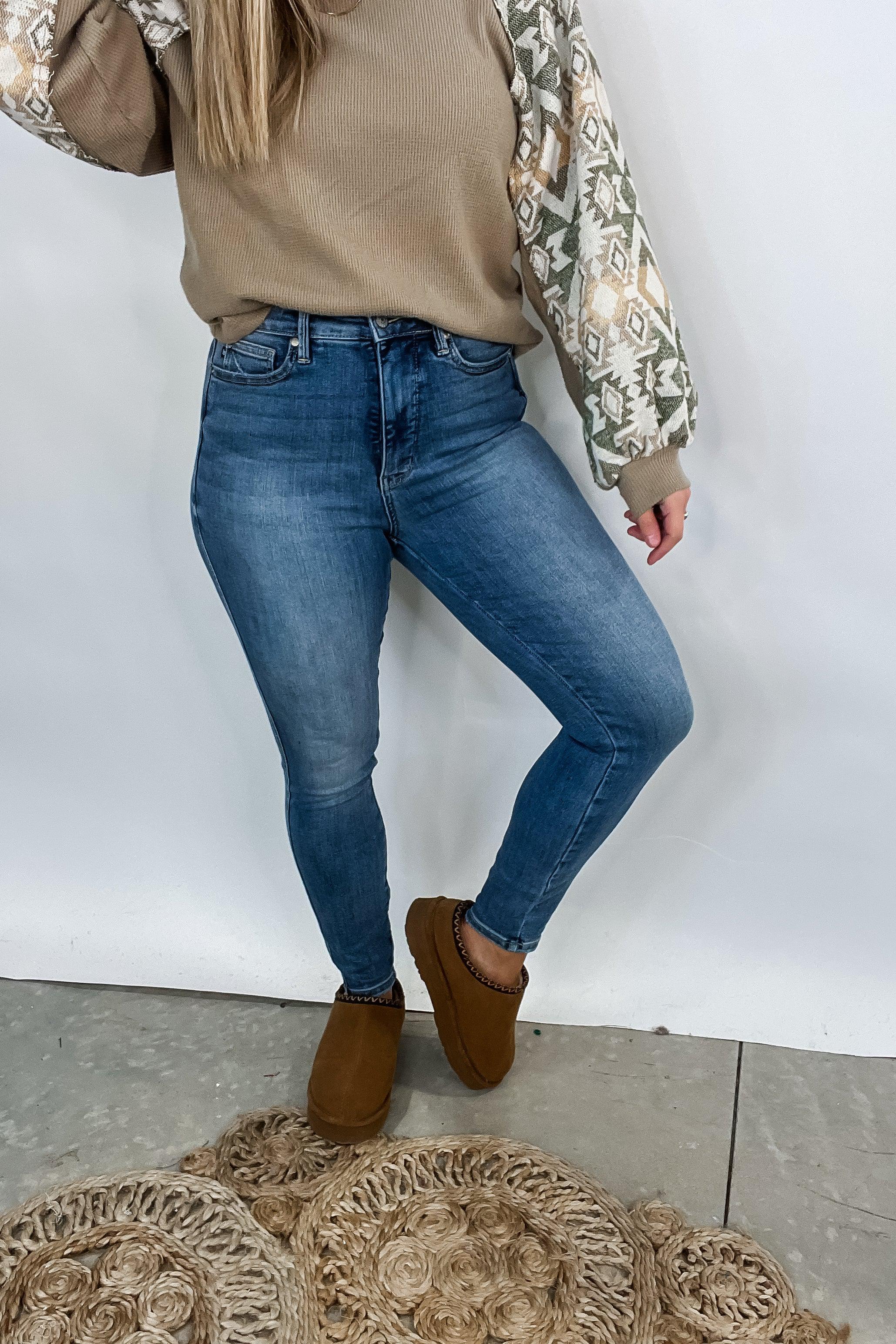 Introducing the Justine High Rise Jeans - the perfect blend of classic and modern. These skinny fit jeans feature a cool contrast wash and a tummy control panel for a flattering fit. Elevate your style with these high rise jeans that are sure to become your new go-to pair.