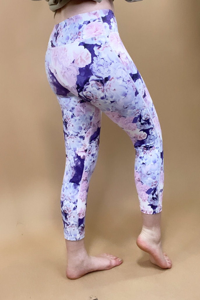 Floral print/Stripe Active Wear Leggings - FINAL SALE