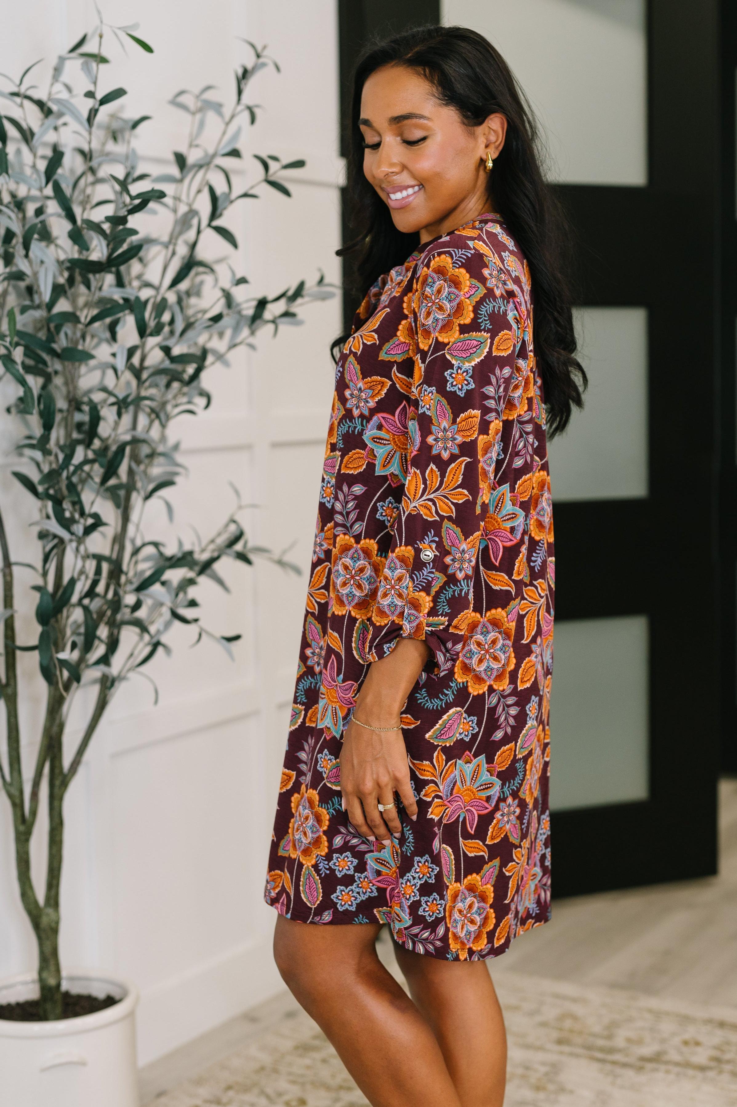 Lizzy Long Sleeve Dress in Chocolate Floral