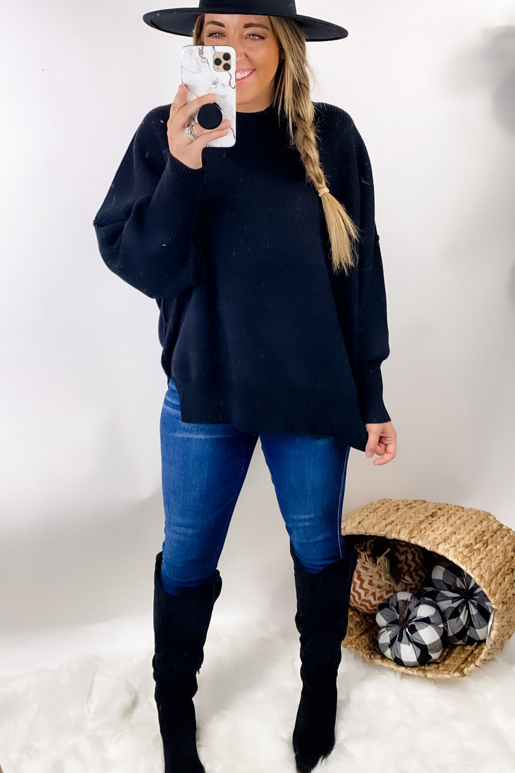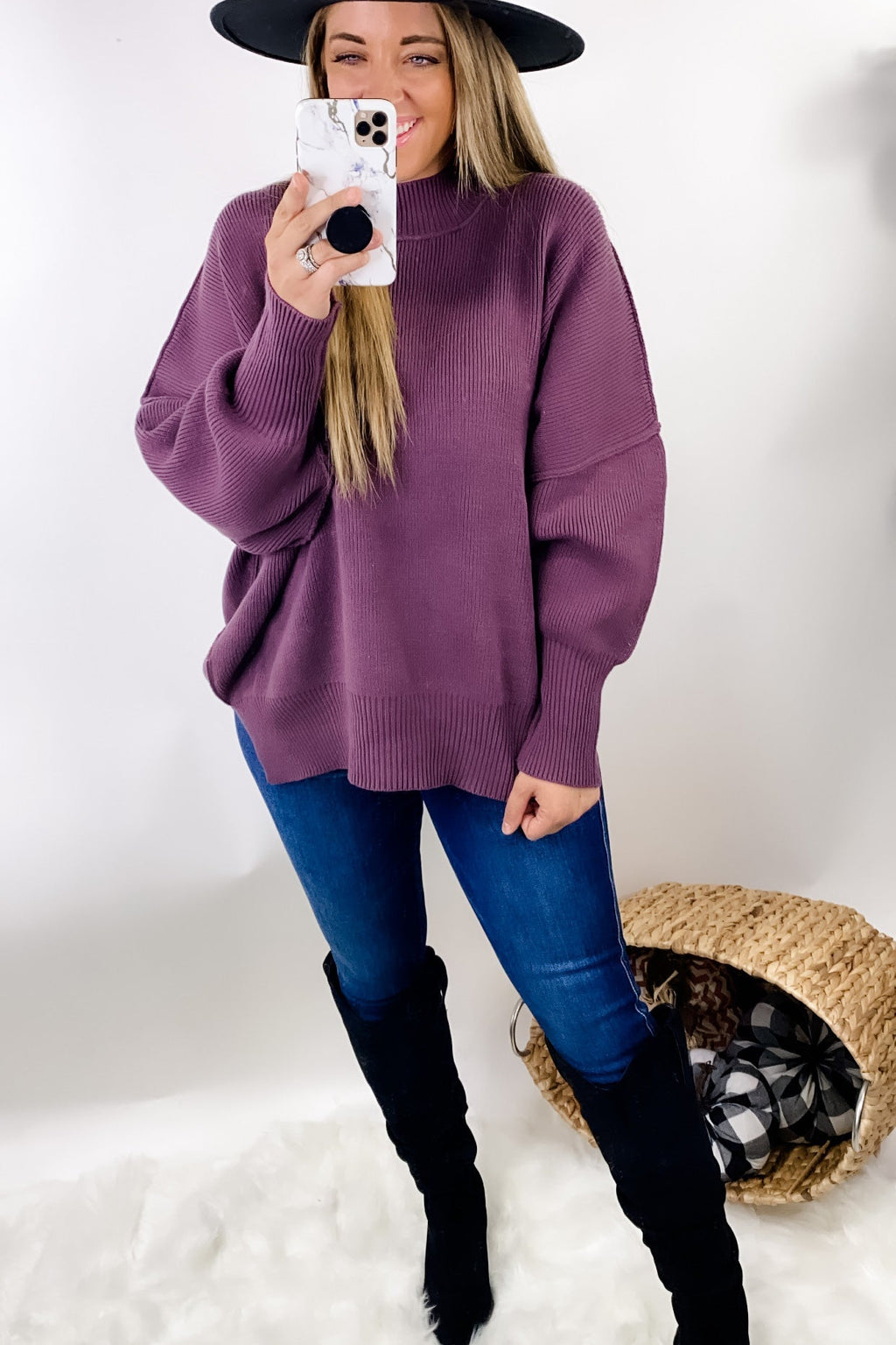 What A Classic- {Black & Mauve} Ribbed Scoop Neck Long Sleeve Top