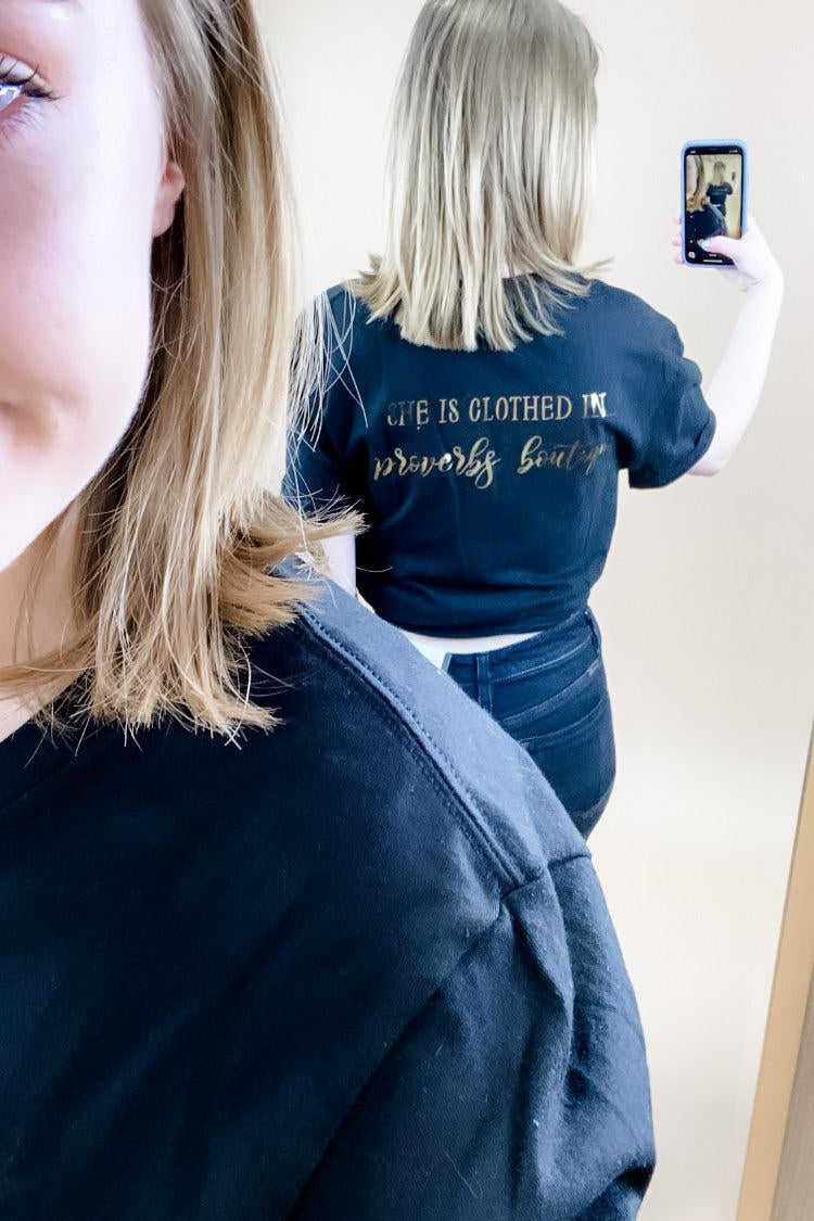 Proverbs Boutique Black Tee w/ Rose Gold Detail