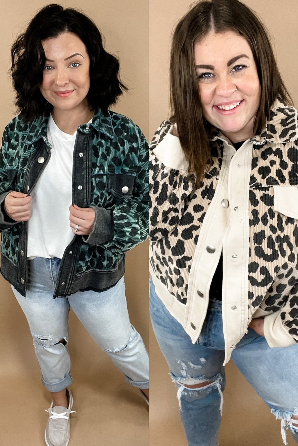 Showing Out- {Teal & Cream} Leopard Vintage Wash Corduroy Jacket