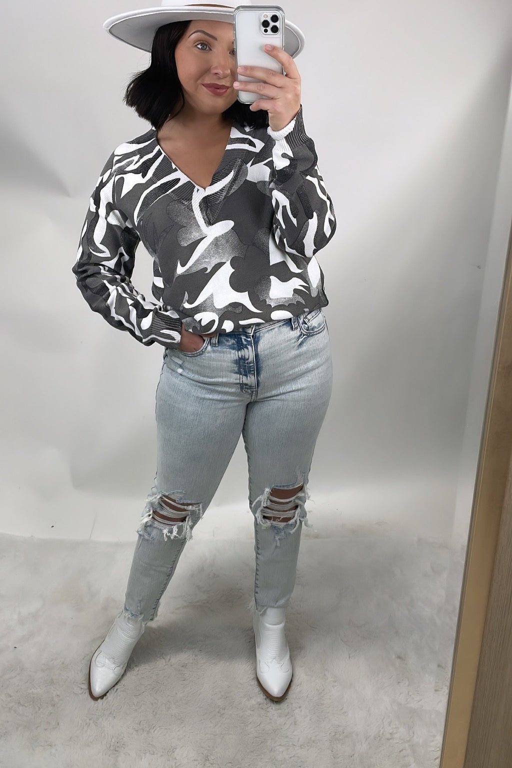Gray & White Swirled Top