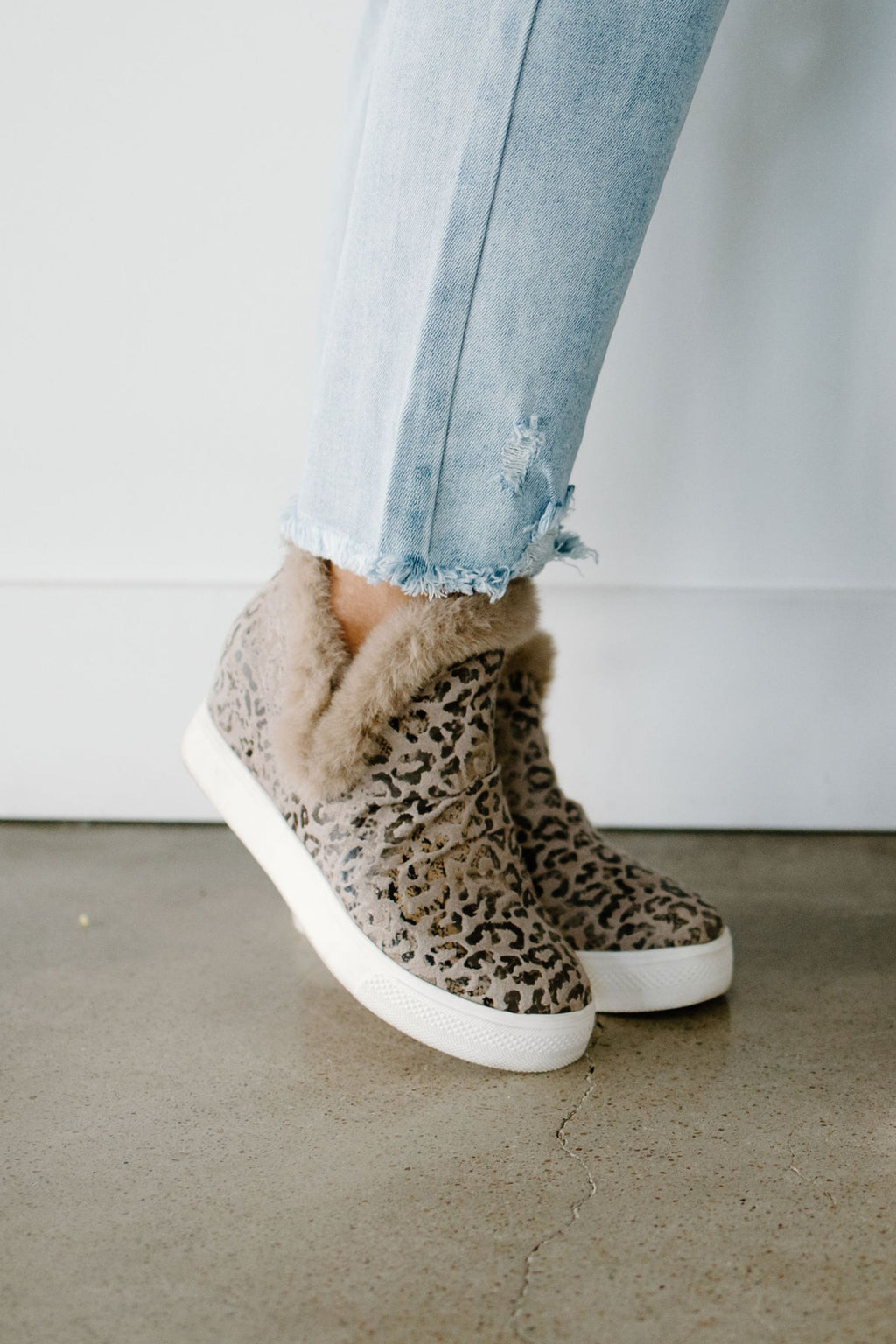 Getting Ahead- Taupe Leopard Fur Lined Wedge Sneakers
