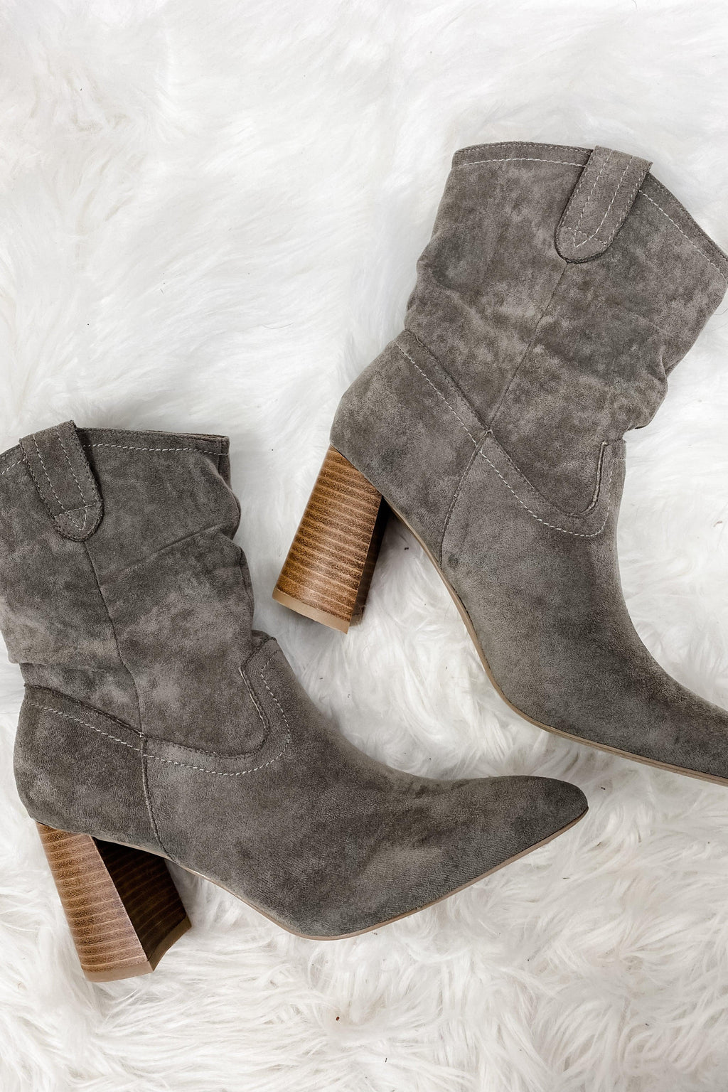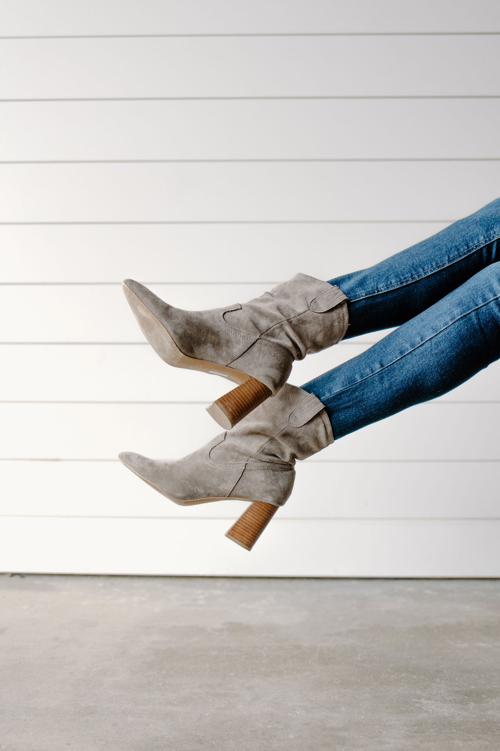 PerSUEDE Me- Gray Suede Pointed Toe Booties
