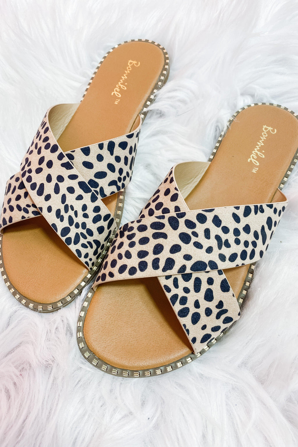 Through The Wild- Cheetah w/ Gold Studs Criss Cross Sandals