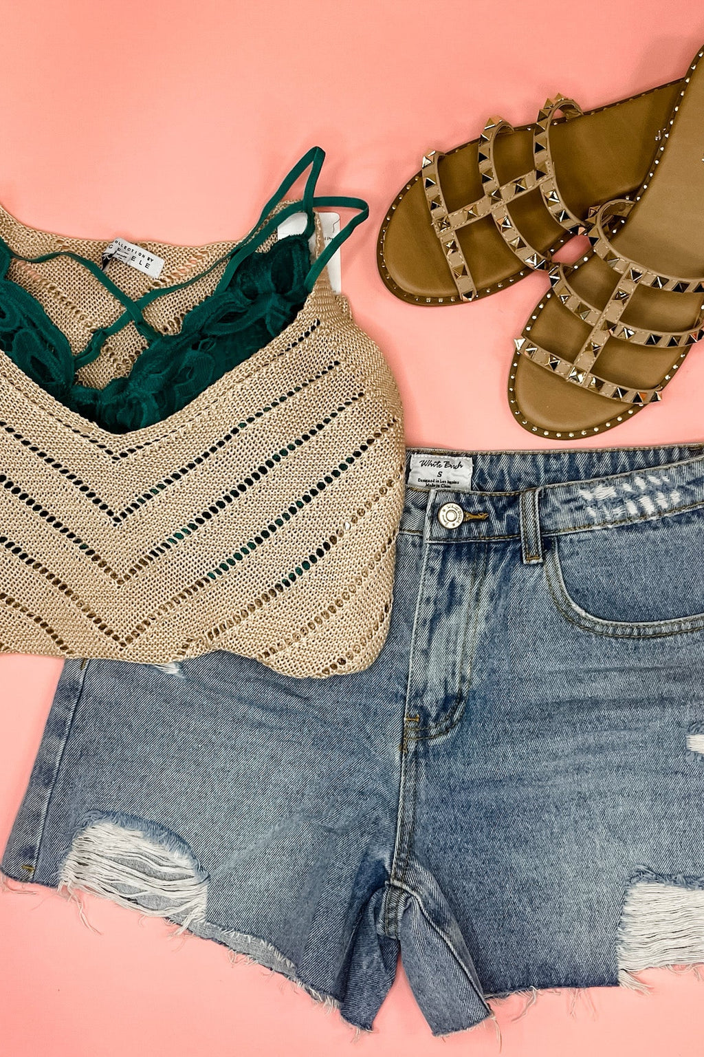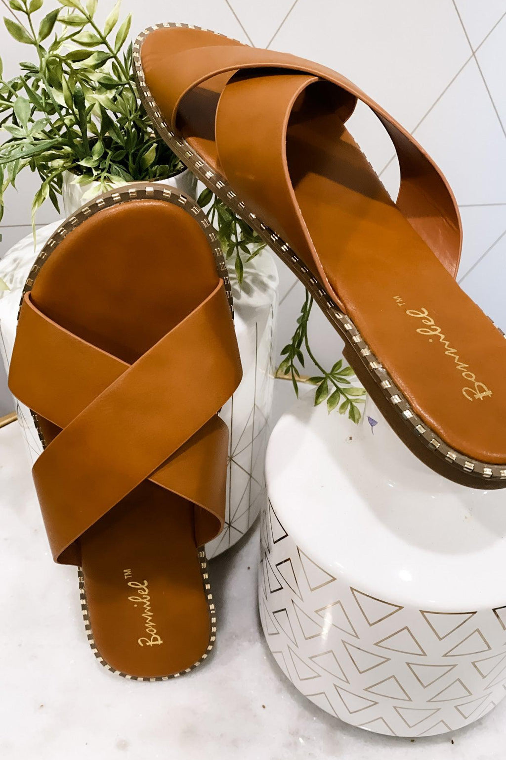 Through The Wild- Camel w/ Gold Studs Criss Cross Sandals