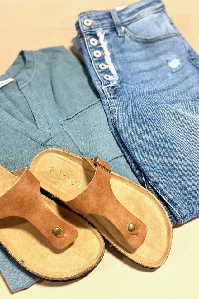 Sitting By The Sandbar- {Black, Brown & Taupe} Thick Soled Sandals w/ Leather Detail