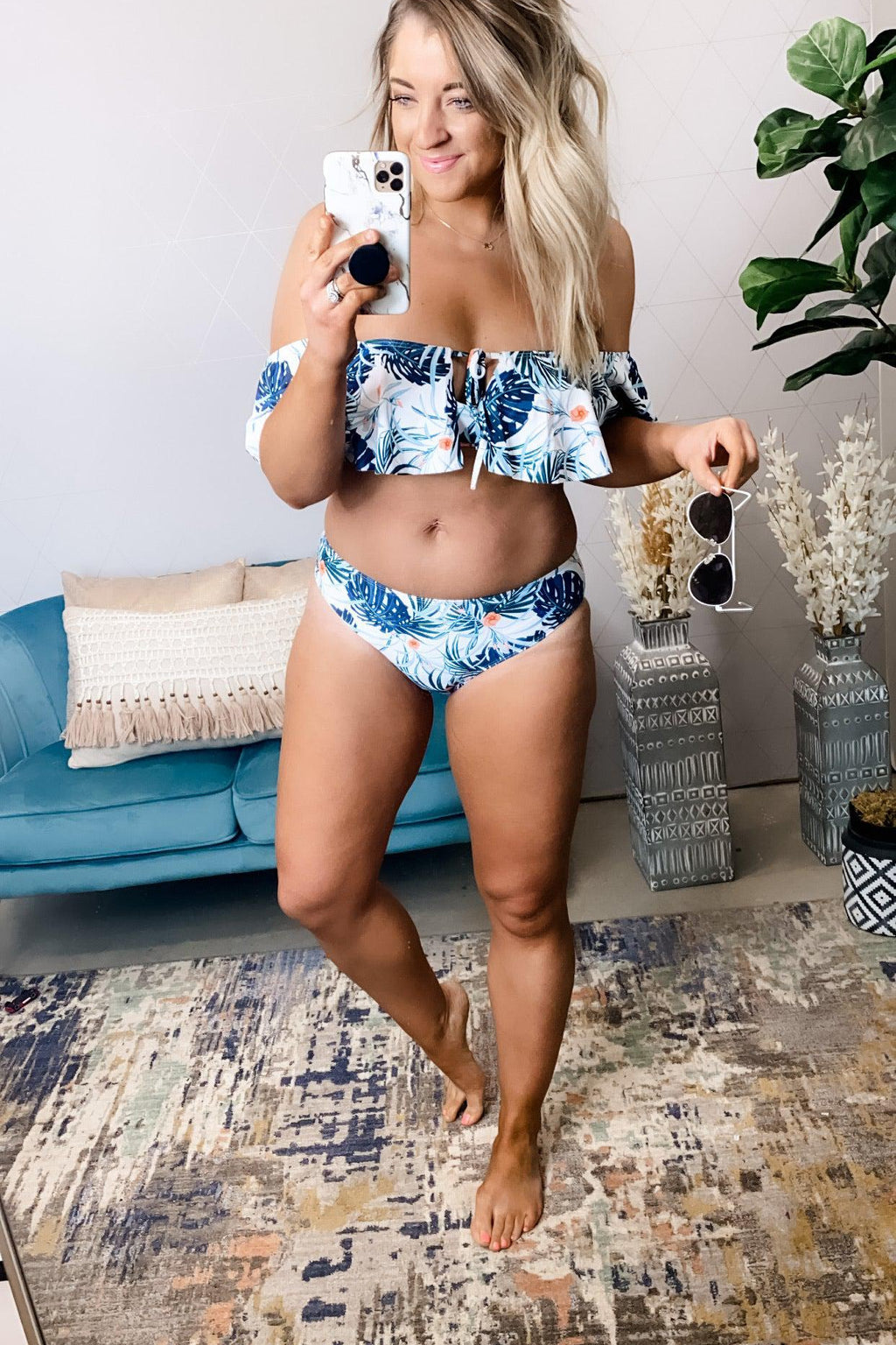Let's Sail Away- Blue & Floral Mid-Rise Reversible Swim BOTTOMS