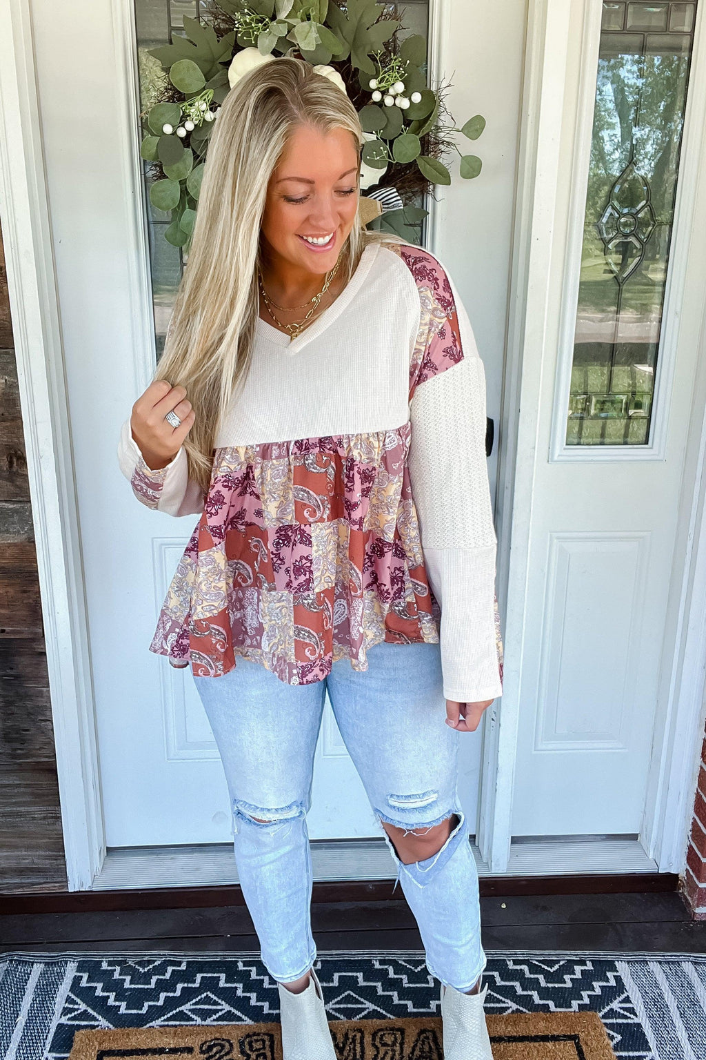 Sweet as Pie Color Block Relaxed Long Sleeve
