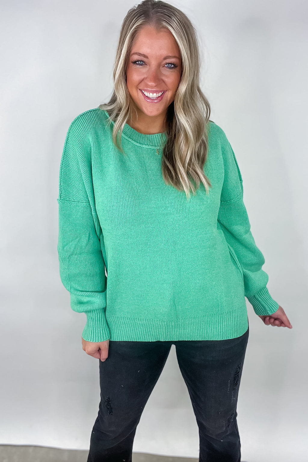 Simple Silhouette Brushed Hacci Sweater in Dark Green
