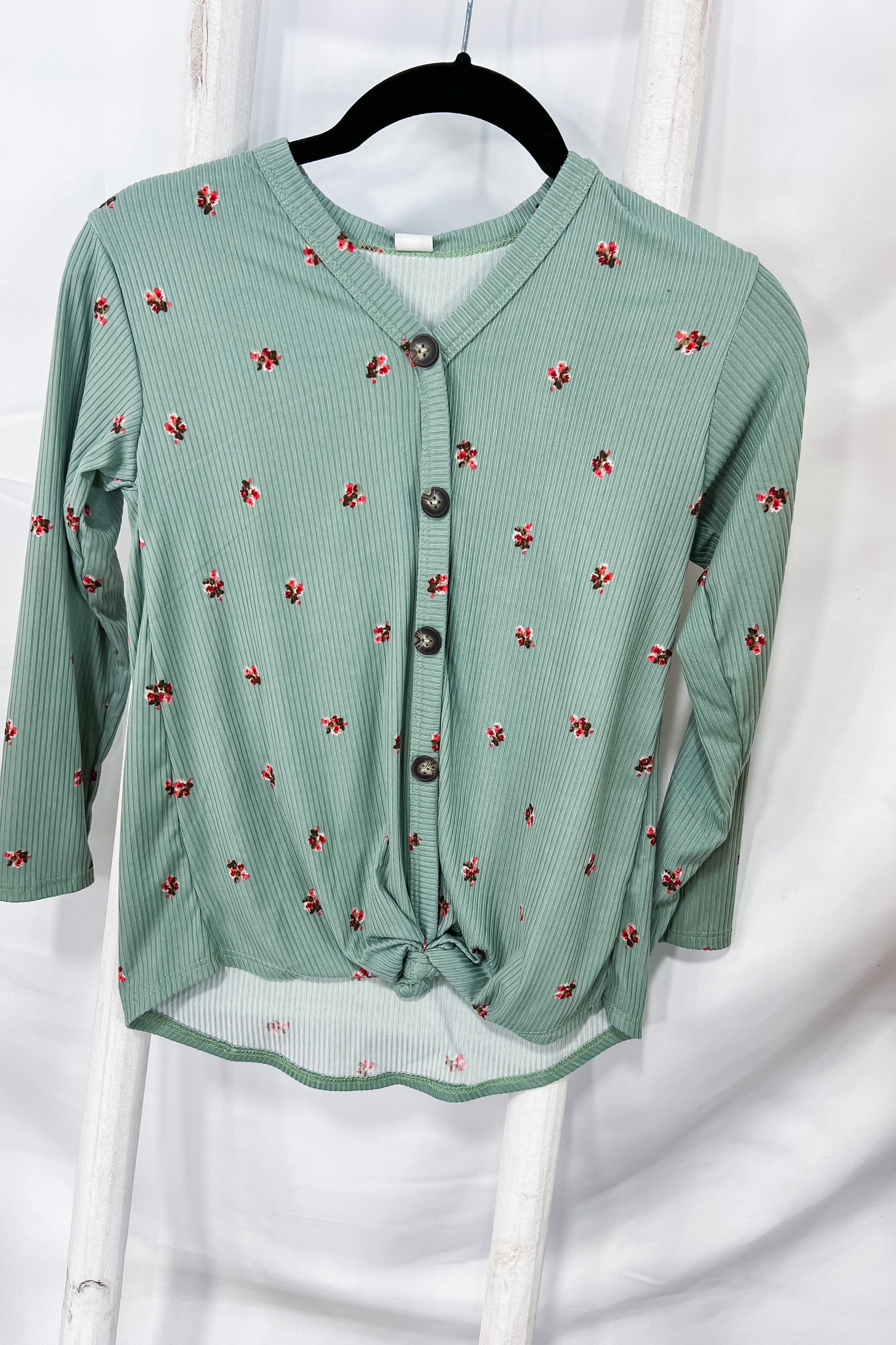 KIDS- Bring You Up- Sage Ribbed Front Knot w/ Floral